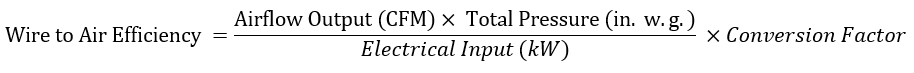 Wire-to-air efficiency tells the complete story: from power drawn at the electrical outlet (the "wire") to the volume of air moved by the fan. This is the metric that best represents actual energy usage and system performance.